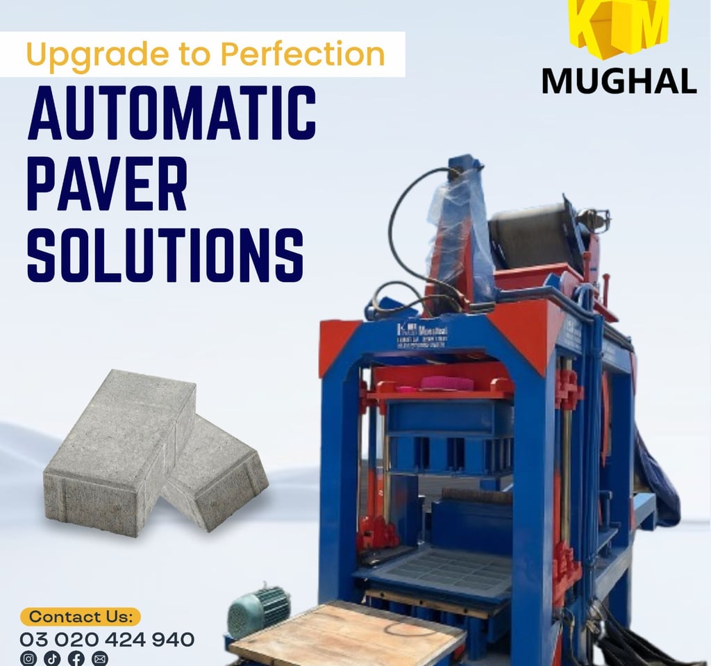 At KM MUGHAL, we manufacture high-quality automatic and manual block making machines that not only save time but also reduce labor costs. These machines are designed to produce hollow blocks, solid blocks, pavers, fly ash bricks, and tuff tiles with maximum efficiency.